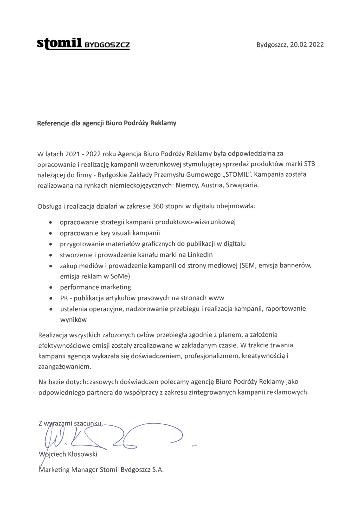 Referencje dla agencji Biuro Podróży Reklamy od Stromil Budgoszcz